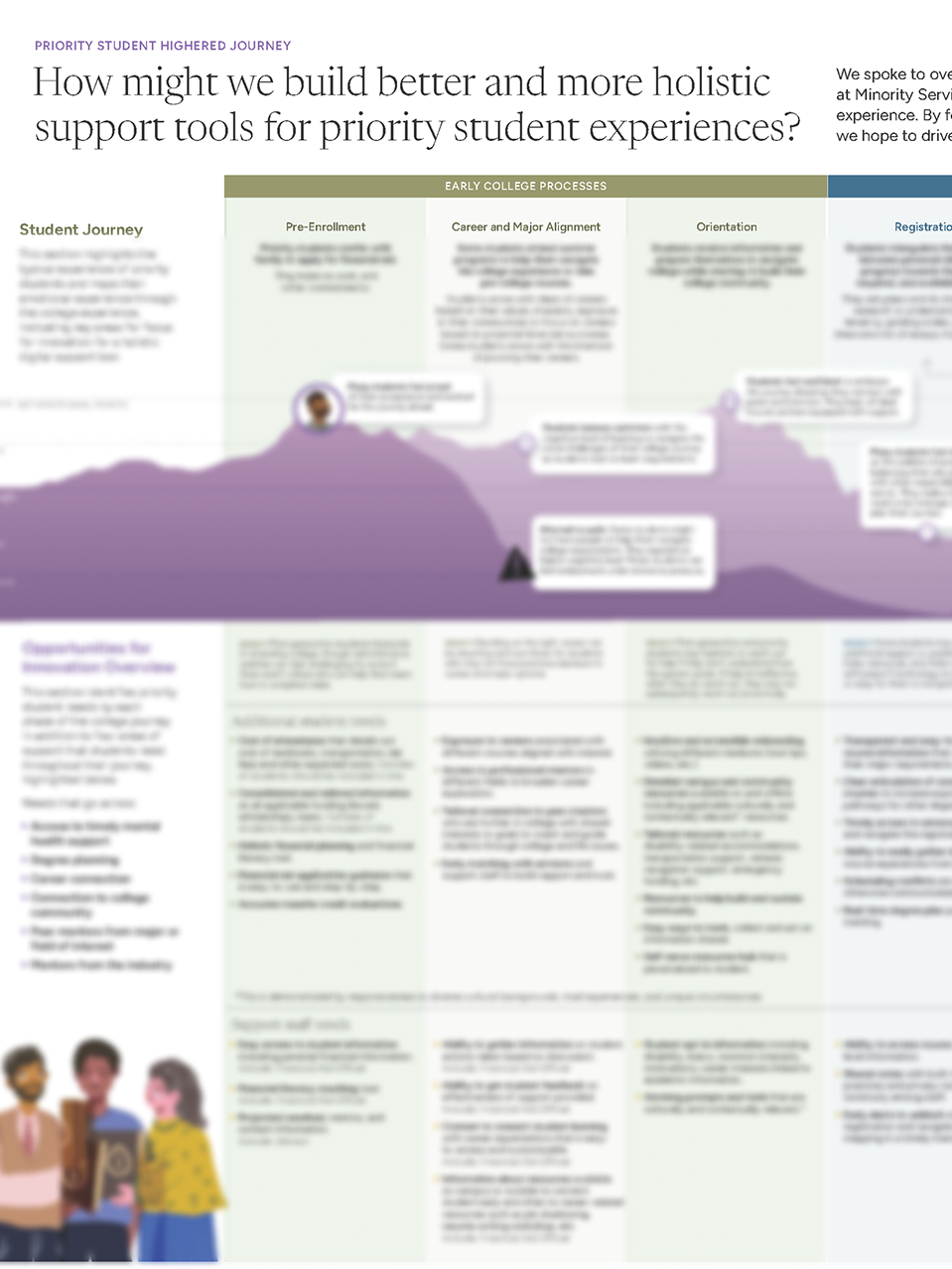 Strategic Design Research to Make college experiences more equitable across physical and digital touchpoints.