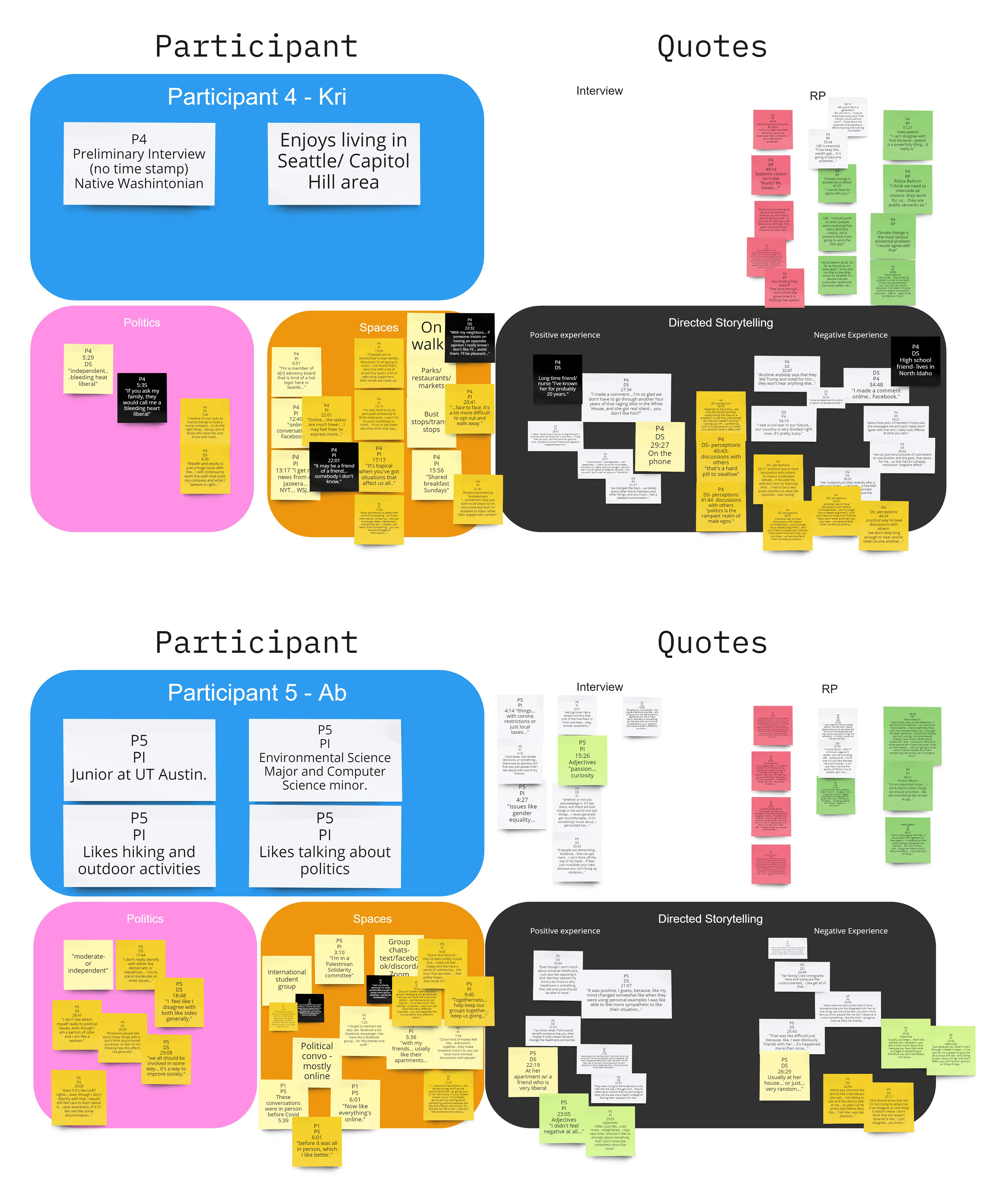 The directed storytelling was designed to gather information about preferences and dynamics of conversation. We wanted to understand what dynamics ameliorate or complicate conversations intersecting politics.