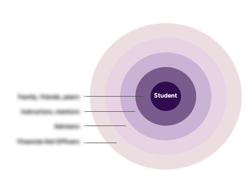 While reviewing the data, we uncovered student relationships that impact their college navigation and support processes and how this enables them to succeed. I mapped it.